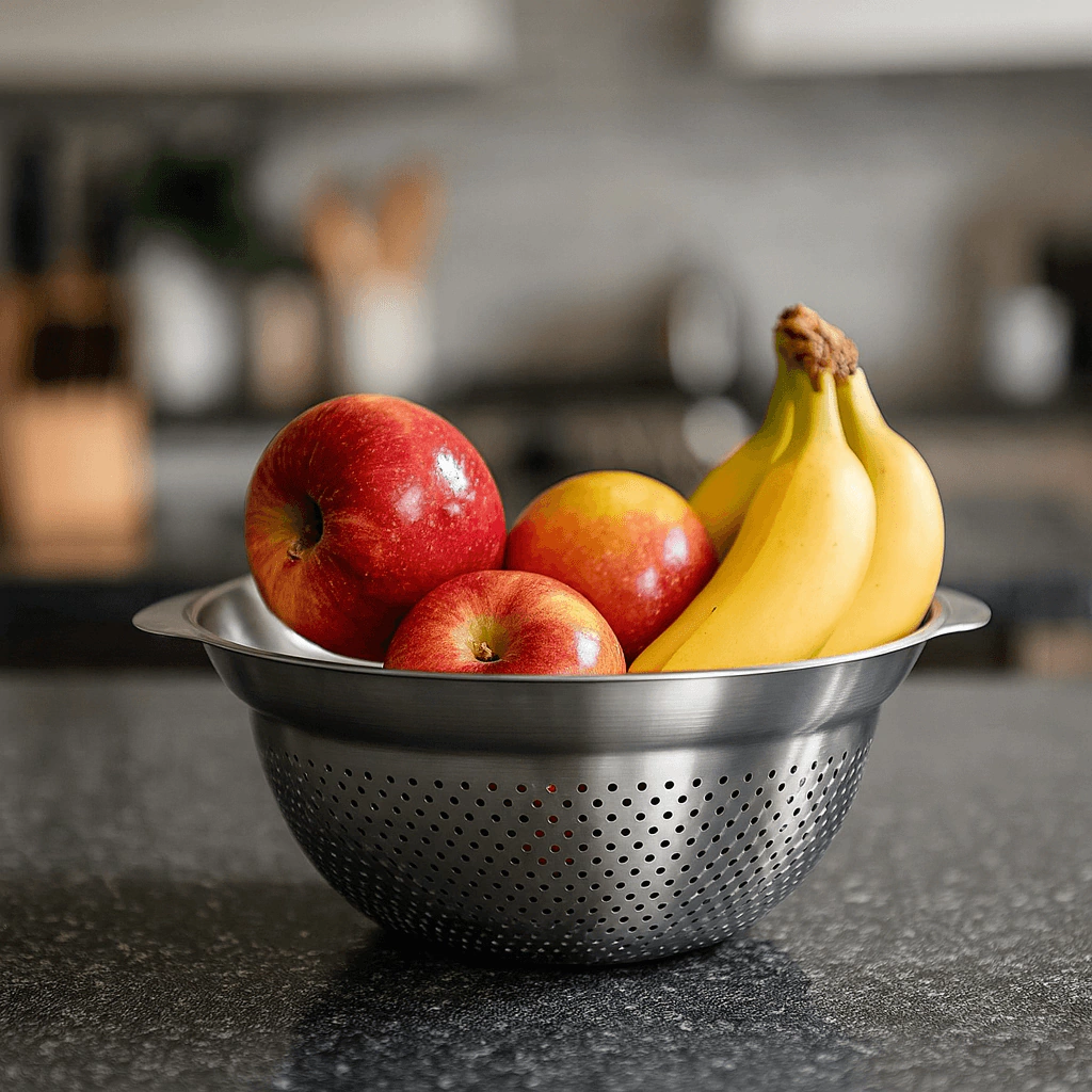 O escorredor multiuso de metal é a solução prática e versátil para o dia a dia na cozinha, ideal para lavar e escorrer arroz, legumes, frutas, verduras e outros alimentos de forma rápida e eficiente. Produzido em metal resistente de alta qualidade, garante durabilidade, segurança no contato com alimentos e fácil higienização. Seu design funcional permite o escoamento completo da água, evitando acúmulo e mantendo os alimentos frescos e prontos para o preparo. Leve, compacto e fácil de manusear, é perfeito para uso doméstico ou profissional, trazendo praticidade e organização para sua rotina culinária.