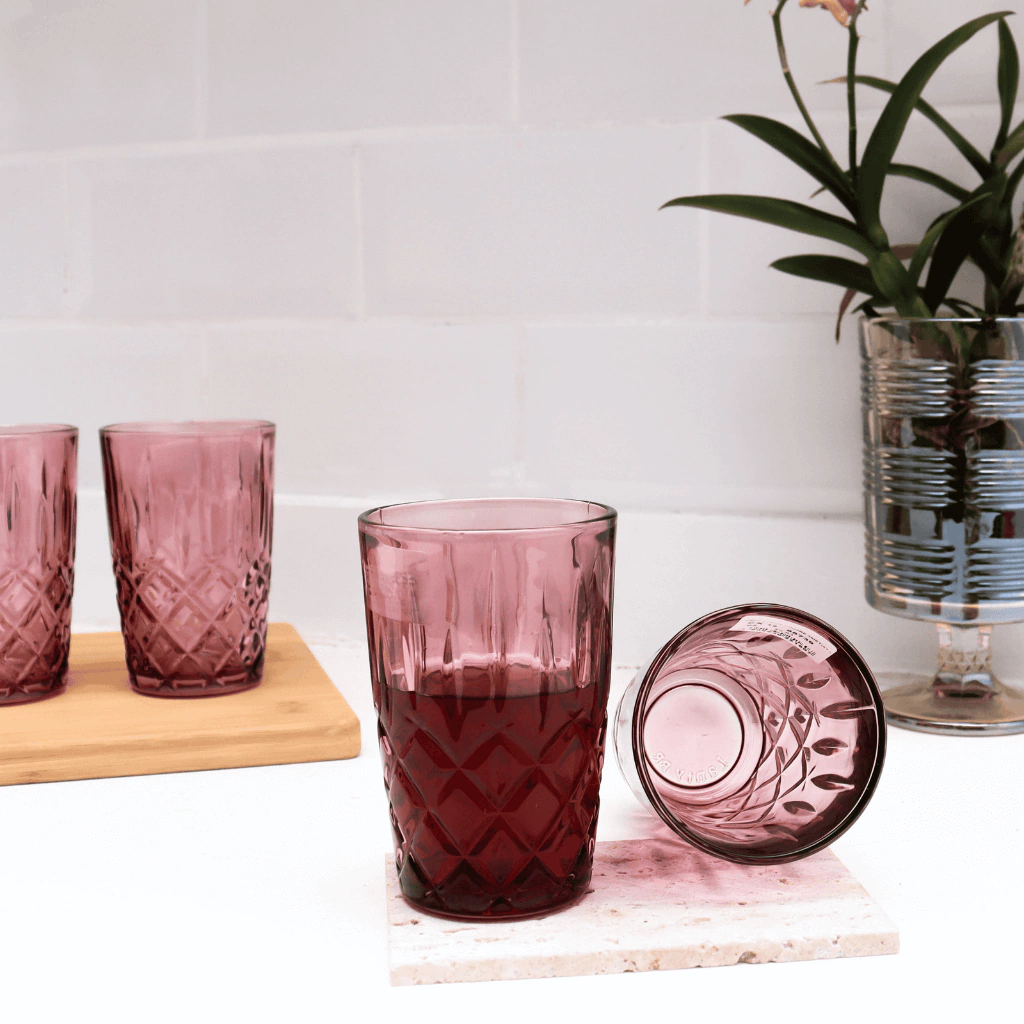 Jogo 4 Copos de Vidro Louvre Ametista 350ml Luxo Bebidas Água Suco