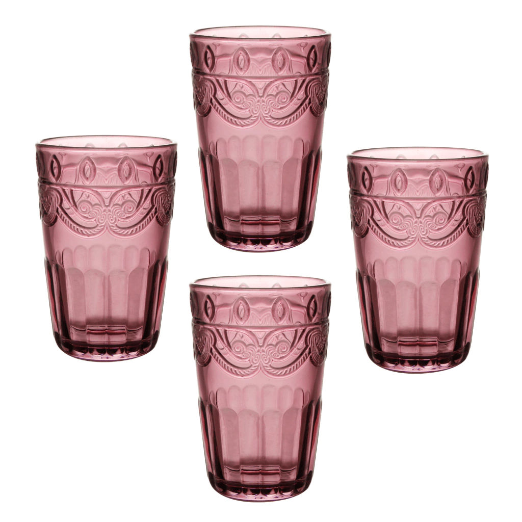 Jogo 4 Copos de Vidro Louvre Ametista 350ml Luxo Bebidas Água Suco