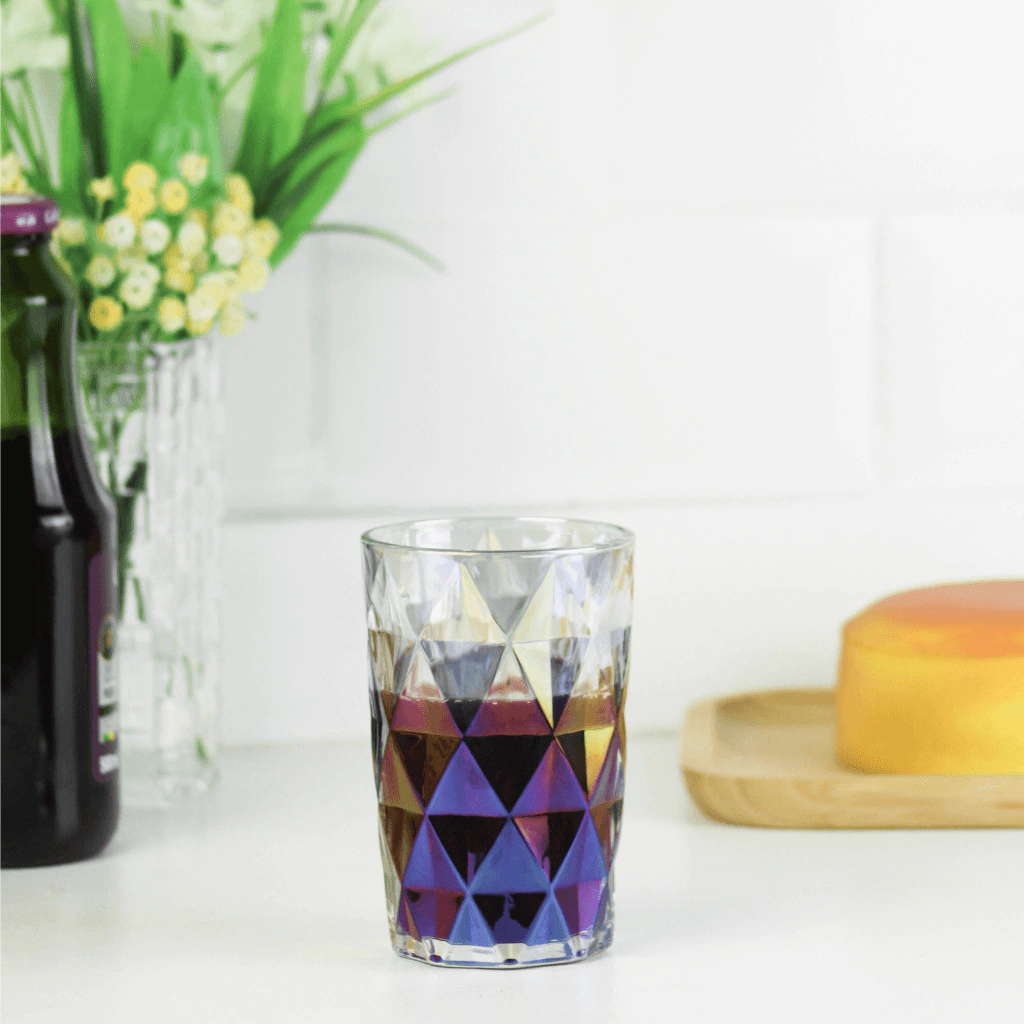 Jogo C/ 6 Copos de Vidro Diamond Rainbow 350ml Luxo Bebidas Água Suco