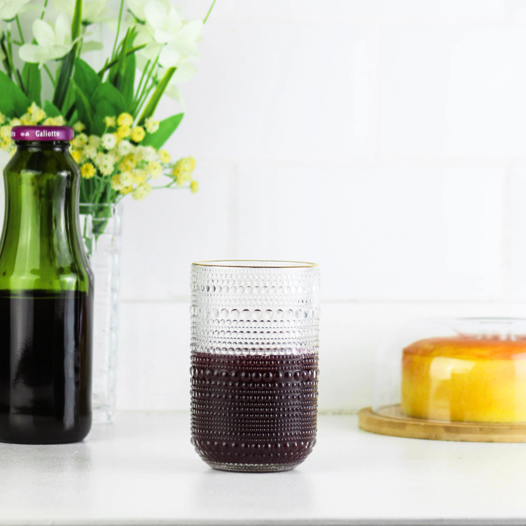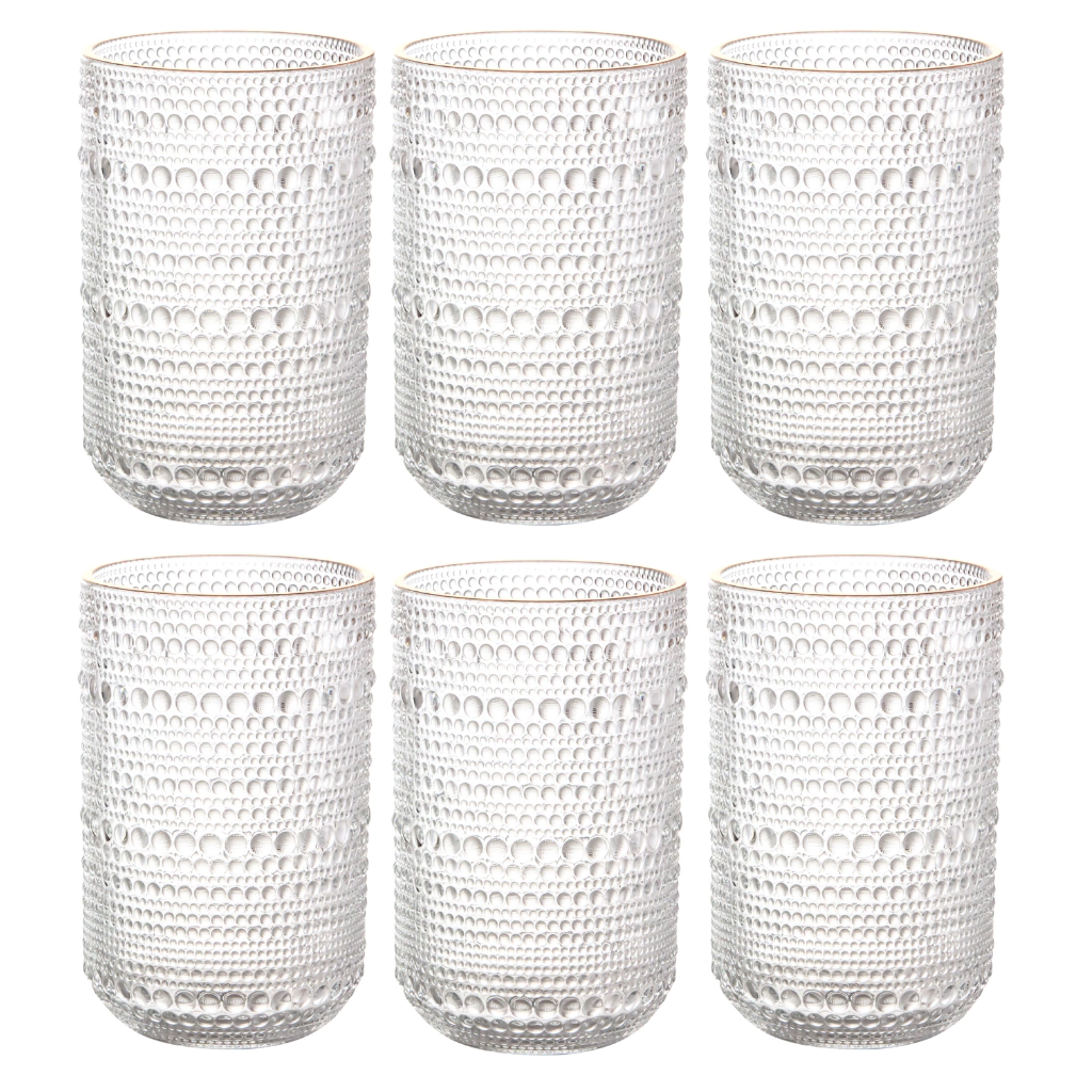 Jogo C/ 6 Copos de Vidro Pérola Borda Dourada 460ml Luxo Bebidas Água Suco