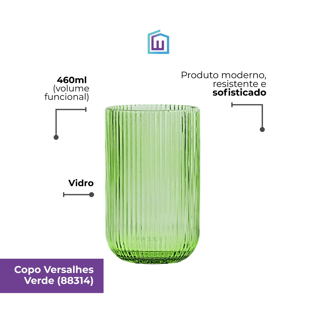 Conteúdo da Embalagem: 1 Jogo C/ 6 Copos de Vidro Versalhes Verde 460ml.