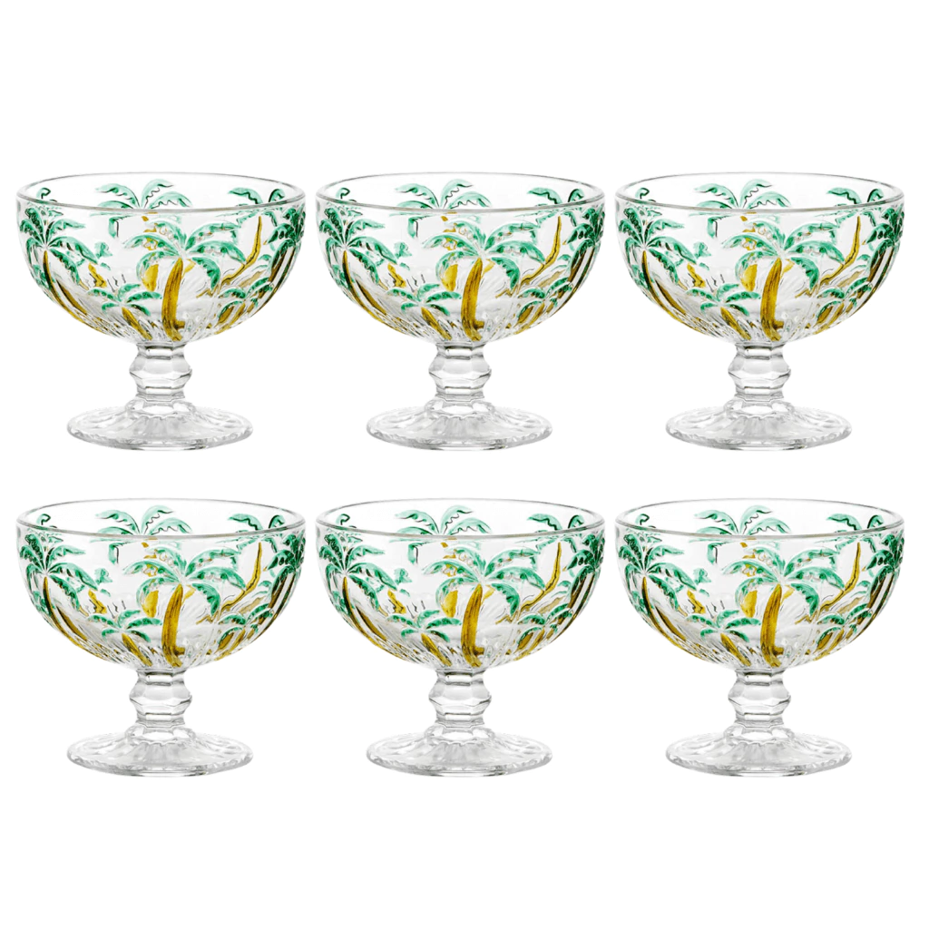 Jogo C/ 6 Taças de Sobremesa Palm Tree Alto Relevo 310ml Mesa Posta Sorvete Doces