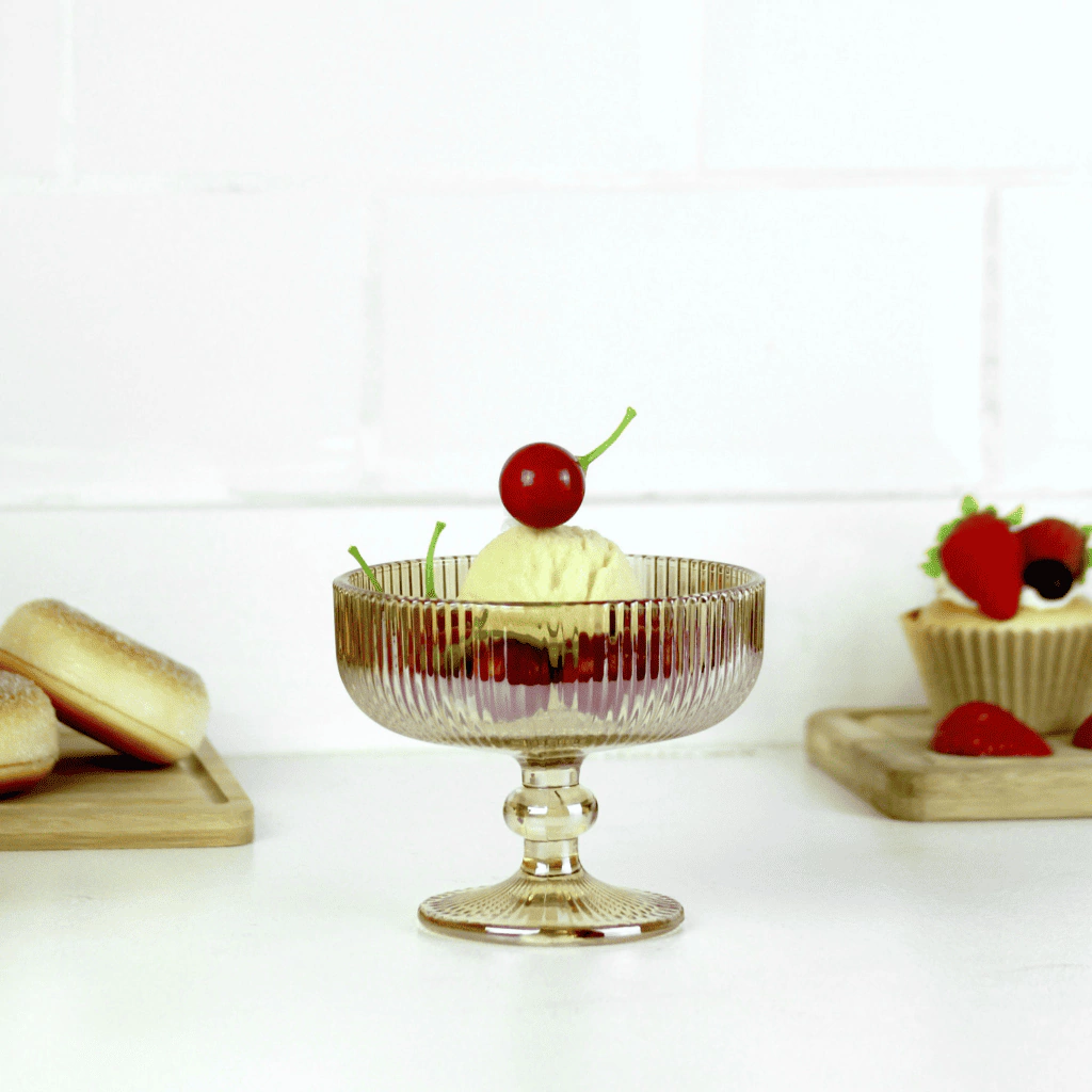 Conteúdo da Embalagem: 1 Jogo C/ 6 Taças de Sobremesa Versalhes Âmbar 310ml.