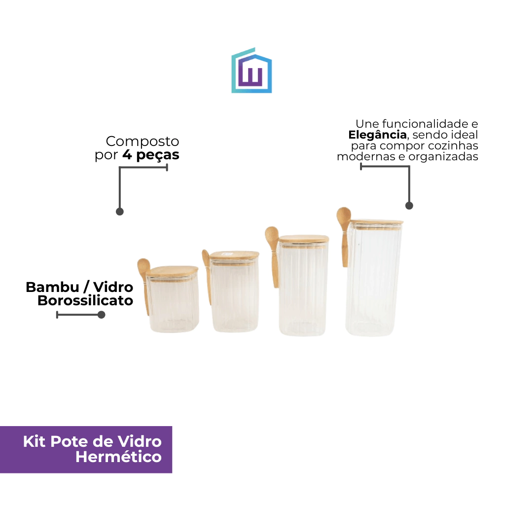 O Kit com 4 Potes de Vidro Hermético Canelado com Colher Transparente nos tamanhos 650ml, 850ml, 1100ml e 1300ml é ideal para quem busca praticidade, elegância e organização na cozinha. Produzidos em vidro de alta resistência, os potes garantem durabilidade, segurança e fácil higienização, além de suportarem variações de temperatura. O design canelado e o acabamento transparente proporcionam um visual sofisticado e moderno, permitindo visualizar facilmente o conteúdo interno. Cada pote conta com tampa hermética e vedação em silicone, que preserva o sabor e a qualidade dos alimentos, protegendo contra umidade e odores. Acompanha colheres individuais que facilitam o uso e tornam o armazenamento ainda mais prático. Com tamanhos variados, o kit é perfeito para guardar grãos, farinhas, cafés, chás, biscoitos e outros mantimentos, mantendo tudo sempre fresco e organizado. Funcional e decorativo, o Kit de Potes Herméticos Canelados é indispensável para quem valoriza beleza, qualidade e praticidade no dia a dia.
