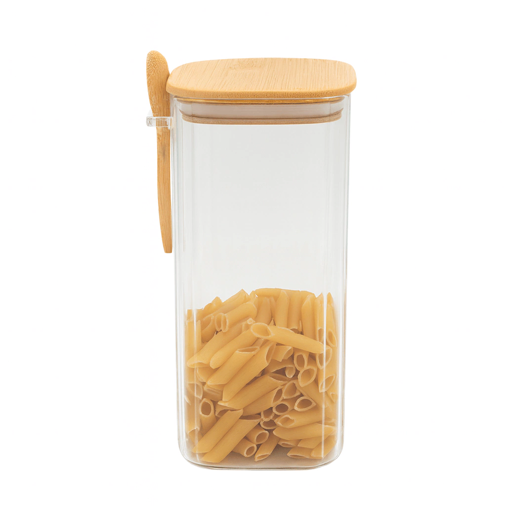 Pote de Vidro Hermético Borossilicato Transparente Canelado C/Colher 1300ml Mantimentos Grãos Decoração Cozinha