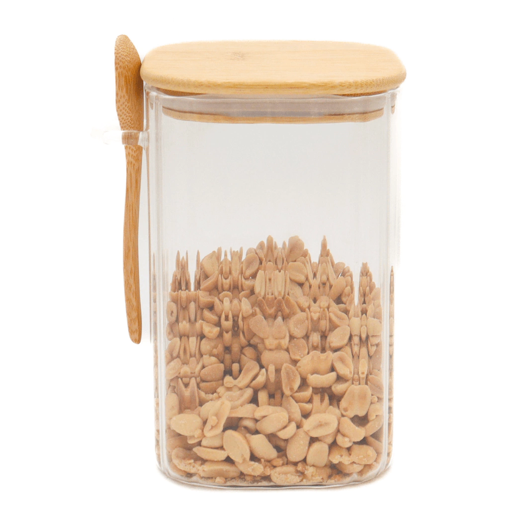 Pote de Vidro Hermético Borossilicato Transparente Canelado C/Colher 850ml Mantimentos Grãos Decoração Cozinha