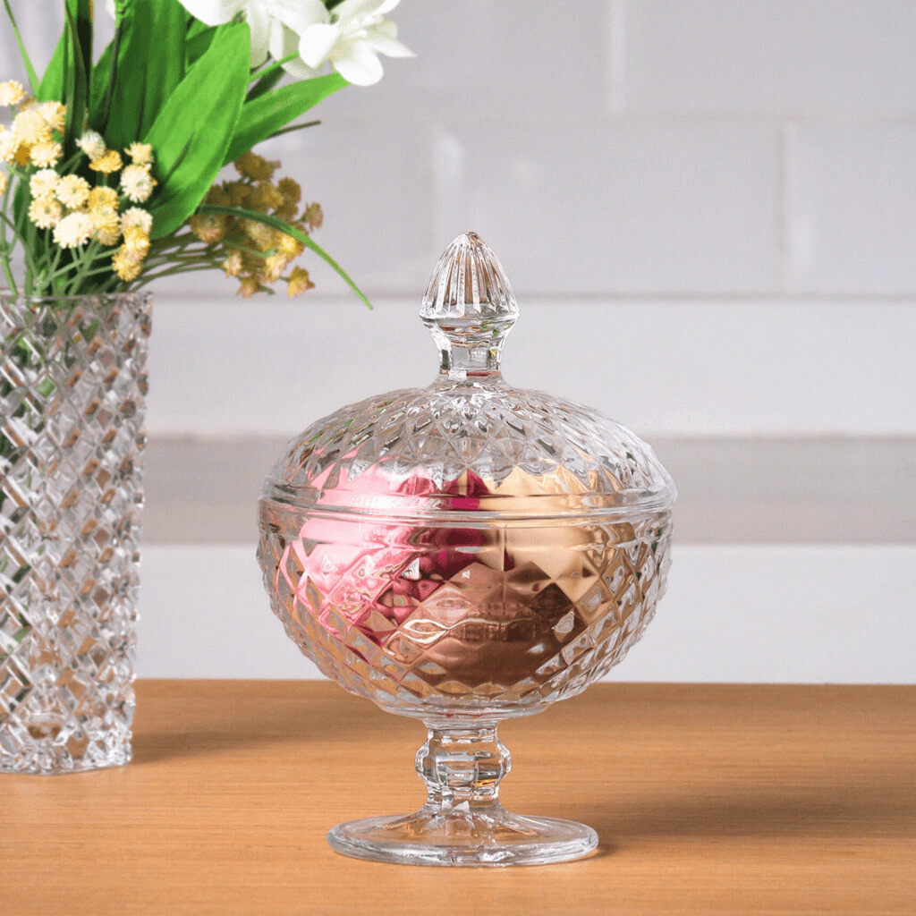 Potiche de Vidro C/ Pé Lumiere Transparente Baleiro Bomboniere 12x18,5cm Resistente