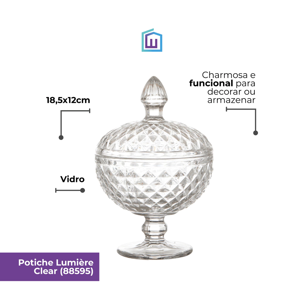 Conteúdo da Embalagem: 1 Potiche de Vidro Lumiere Transparente.