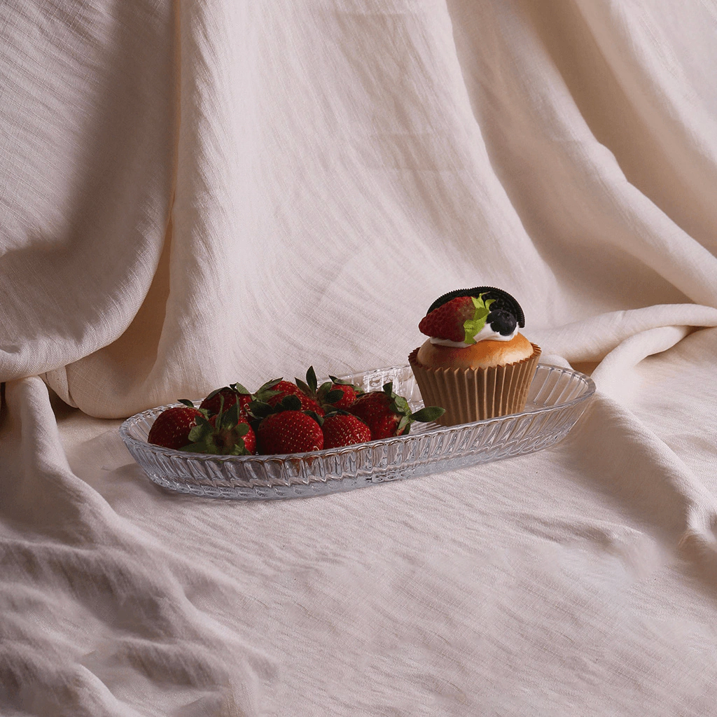 Travessa De Cristal Ravena Oval 28x13,5cm Vidro Para Petisco Bandeja Servir Mesa Posta Transparente