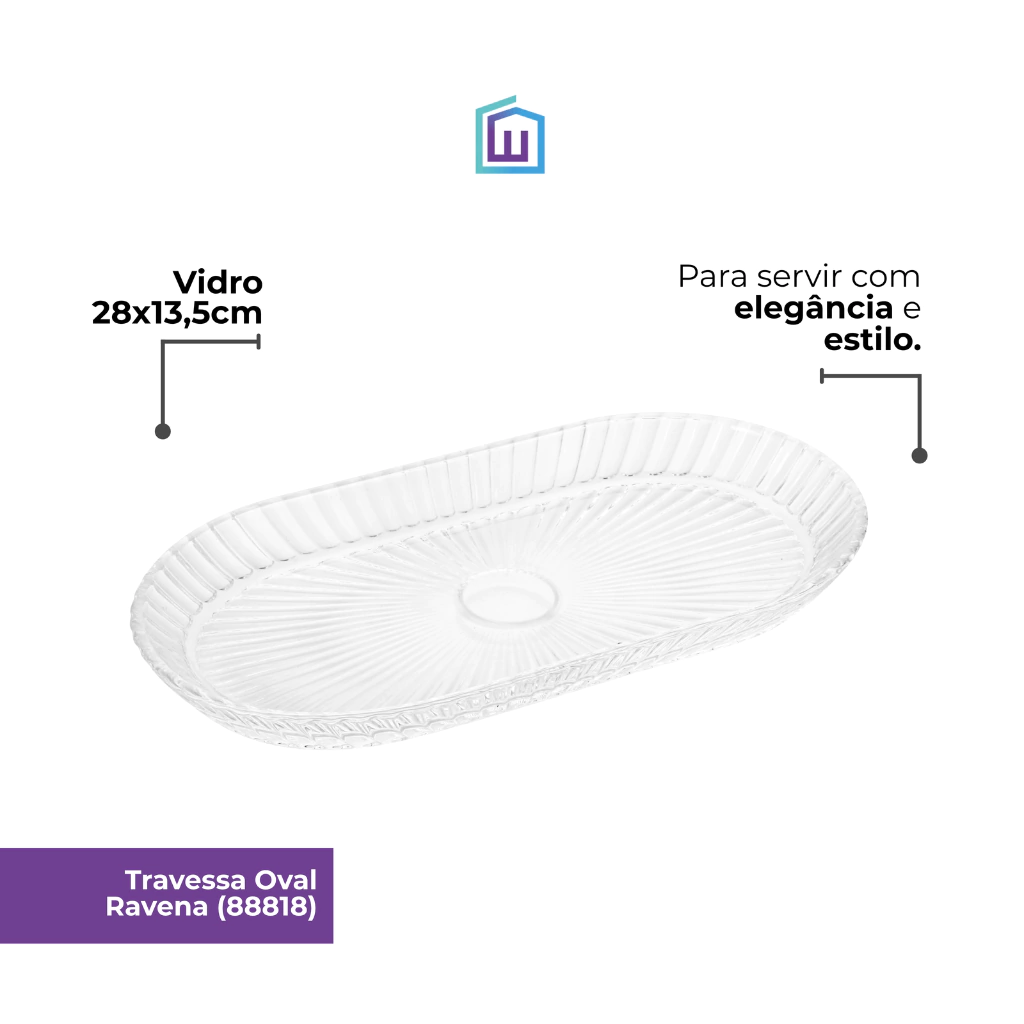 Conteúdo da Embalagem: 1 Travessa De Cristal Ravena Oval 28x13,5cm.